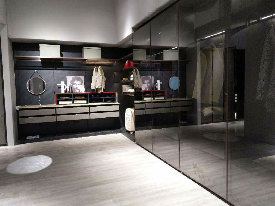 3.衣帽間,家的氣質所在,高門大柜,既有外在氣質,更有內涵,內部空間的精細分工,讓男女主人公的衣物、包包、首飾、皮帶、鞋等得到合理收納。